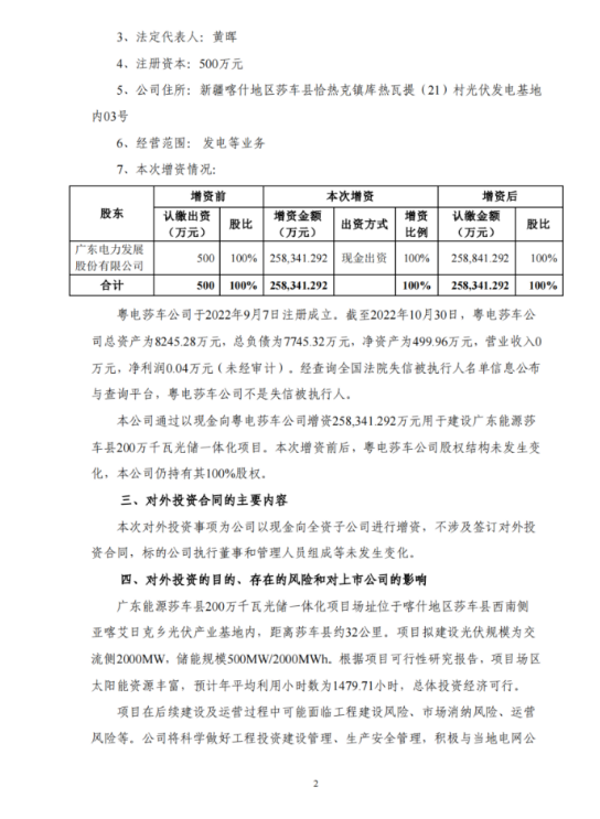 12月1日,廣東電力發(fā)布《關(guān)于投資建設(shè)廣東能源莎車縣200萬千瓦光儲一體化項(xiàng)目》的公告,公告稱,為加快新能源開發(fā)工作,提高清潔能源比重,優(yōu)化電源結(jié)構(gòu),公司董事會同意由全資子公司粵電莎車綜合能源有限公司(以下簡稱“粵電莎車公司”)作為投資主體,投資建設(shè)廣東能源莎車縣200萬千瓦光儲一體化項(xiàng)目。項(xiàng)目總投資1,291,706.46萬元人民幣。