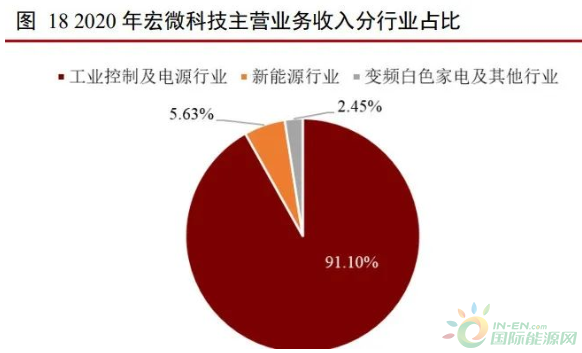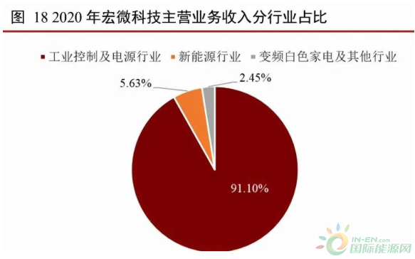 宏微科技是國內首批 IGBT 公司。公司成立于 2006 年 8 月,主要產品包括 IGBT、 FRED 芯片、單管和模塊。公司 IGBT 單管芯片全部來自自研,模塊產品芯片自研外購 并舉。公司產品主要用于工業控制、新能源和變頻白色家電領域,2020 年收入占比分別 為 91.10%、5.63%以及 2.45%。