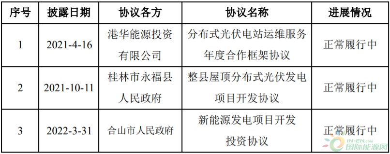 除了與桂林市永福縣合作,近三年來潤建股份還相繼港華能源投資有限公司、合山市人民政府均有新能源源發電項目開發投資協議簽訂,目前正在履行中。