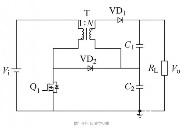 升壓-反激變換器如圖1所示,相比傳統的反激變換器,同樣降低了變壓器匝比和漏感量,并且存在固有的無損吸收電路而無需外加電路元件。有學者將升壓-反激變換器應用于基于直流母線結構的微型逆變器,盡管該電路拓撲不具有隔離功能,但可效仿傳統的非隔離組串式或集中式逆變器,通過增加兩個繼電器來滿足安規要求。然而,升壓-反激變換器不適用于基于虛擬直流母線結構的微型逆變器,原因在于其不具有降壓功能。