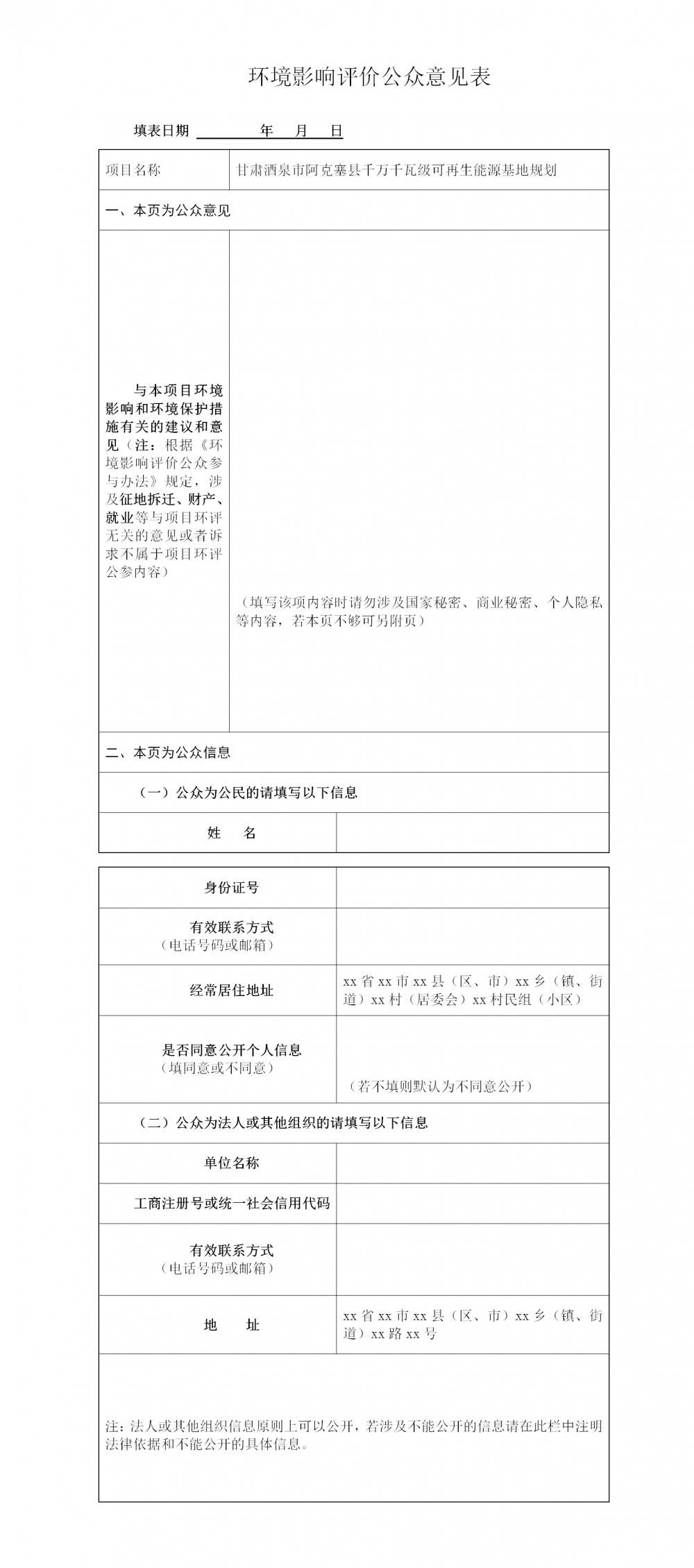 甘肅酒泉市阿克塞縣千萬千瓦級可再生能源基地規(guī)劃環(huán)境影響評價(jià)征求公眾意見第一次公示