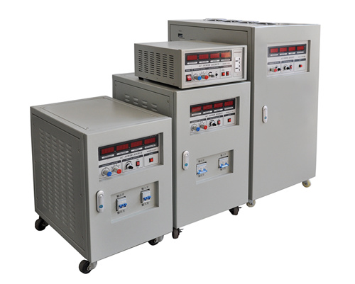 用于檢測斷路器、塑殼斷路器、小型斷路器繼電器、開關、交流接觸器、機械開關、電子開關、電流互感器、需要設定額定電流、動作電流、短路保護電流等生產場合。 ◇ 家電業:如空調、咖啡機、洗衣機、榨汁機、微波爐、收錄音機、冰箱、DVD、吸塵器、熱水器、保健足浴盆、電動剃須刀等產品的測試老化及交直流供電電源。 ◇ 電機、電子業:如交換式電源供應器、變壓器、電子安定器、AC風扇、不斷電系統、充電器、繼電器、壓縮機、照明燈具、電焊機、馬達、鎮流器等被動元件產品的測試電源。 ◇ IT產業及電腦設備:如傳真機、影印機、碎紙機、印表機、掃描儀、燒錄機、伺服器、顯示器等產品的測試電源及穩壓和保護。 ◇ 大專院校、實驗室及研究測試:如交流電源測試、產品壽命及安全測試、電磁相容測試、OQC(FQC)測試、產品測試及研發、研究單位最佳交流電源。 ◇ 做出口認證的企事業單位:如出口美國UL認證,加拿大CSA認證,歐共體CE認證等,各國標準的電源配給產品。 ◇ 航空、航天、軍事:如機場地面設施,飛機及機載設備、雷達、導航等軍用電子設備,航天、軍事研究院所,高炮、火箭、潛艇等的測試電源、啟動電源或供電轉化電源。 ◇ 城市輕軌、地鐵、鐵路、高速公路:如輕軌、地鐵、動車組空調啟動電源、25Hz靜頻信號電源,收費站之電壓穩壓源。 ◇流水線、自動生產線設備:如企事業單位生產線、裝配線、流水線的穩壓和保護。 ◇ 工礦企業、電解、電鍍、充電設備:如PCB板、各類IT產品、CCFL、電解電容器、燈管等電子元件測試老練及交直流供電電源。 ◇ 船舶碼頭及造船、修船企業:如船用岸電電源、船載電源替換發電機使用。 ◇ 外發的建筑施工單位、工程公司:如中國對外援建項目體育館、橋梁、軍用設施等電源穩定轉化。 ◇ 醫療、通訊單位:如醫療電子儀器、廣播通訊設備穩定電源。 ◇ 進/出口設備的配給電源:如進口的電機、馬達、壓縮機、制冷機、制冰機等的轉化模擬電源。 ◇電壓電氣行業:如:斷路器、空氣開關、電表、塑殼斷路器、校驗臺。