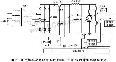上面討論的是荷電狀態(tài)系數(shù)k=0.3~0.85所對(duì)應(yīng)的情況,在這一區(qū)間內(nèi),可認(rèn)為蓄電池的內(nèi)阻Ri是常數(shù)。對(duì)于k<0.3的情況,隨k值的下降,內(nèi)阻Ri會(huì)急劇上升。這一狀態(tài)也可由模擬電源近似模擬:使開關(guān)管T1的PWM脈寬隨k值一起下降,一方面造成電壓的下降,同時(shí)由于也使整個(gè)線路的開關(guān)損耗增大,這相當(dāng)于增加了蓄電池的內(nèi)阻。不過這樣得到的Ri值與蓄電池的實(shí)際內(nèi)阻可能有相當(dāng)?shù)牟罹啵虼薻<0.3的情況不適宜使用。