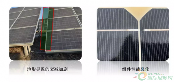 資產發電能力:影響發電能力的原因多種多樣,例如早期建設的光伏電站地面整體推平是較多的,而后為節約建設成本,地面被推成階梯狀地形,但這樣會出現部分時段組件被遮擋的情況,在下午時電池的遮擋會導致組件的發熱,發熱后這兩塊組件相較衰減速度會比其他的更快一些,并且衰減會影響整個組串的發電量。另外,組件性能的惡化諸如背板發黃等都影響著整個組串的發電量。這些細節都需要專業且有經驗的運維團隊實行有針對性解決方案。