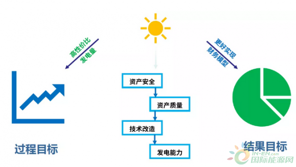 光伏資產管理的目標分為過程目標與結果目標。電站運維最終目標就是發電量,在這個過程中,投資者最關心的問題是投入是否達到預期回報,而實現這一目標需要從資產安全與資產質量、技術改造與發電能力談起。