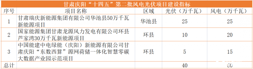 近日,甘肅省慶陽市擬分配“十四五”第二批風電光伏項目建設指標已出,共計100萬千瓦,其中風電60萬千瓦,光伏40萬千瓦。